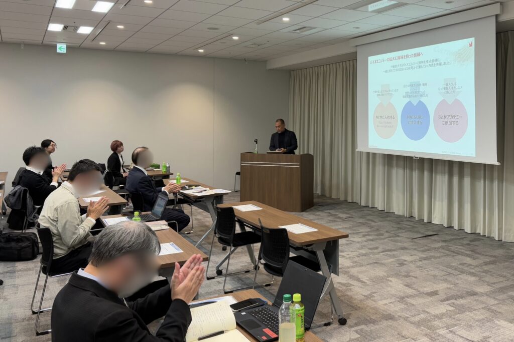 In his presentation, entitled "The essence of biotechnology that business people should know today," Fujita explained the trends in biotechnology and its business, and raised the issue of evaluating people and businesses based on a single KPI that overlooks the essence and goals. In response, while introducing the CHITOSE Group's business, we emphasized our sincere efforts to bio-ize all industries.