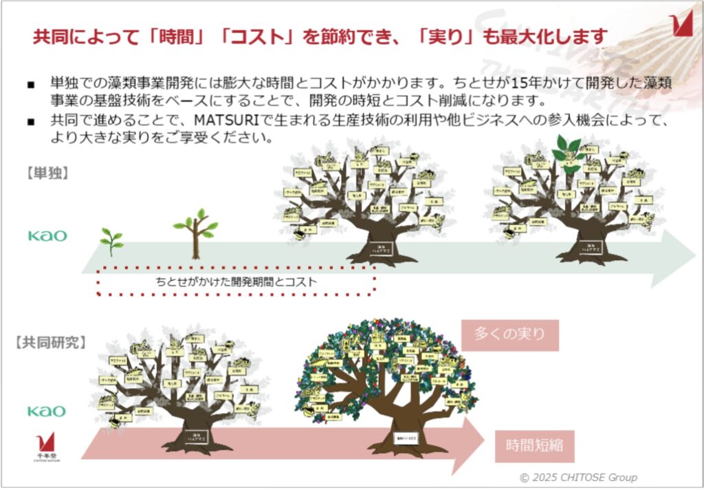 In the second half of the event, Tatsuro Ozaki, Senior Researcher at the Biomaterials Science Laboratory, Research and Development Division of Kao Corporation, gave a speech. Kao Corporation has been focusing on Nannochloropsis, a marine algae with a high oil accumulation capacity, and has been conducting research and development into this algae for many years. Kao also introduced a strain that produces high amounts of lauric oils using Kao's self-cloning technology. While CHITOSE and Kao will continue their joint research, they are seeking partners who can work on developing applications and processes for biomass.