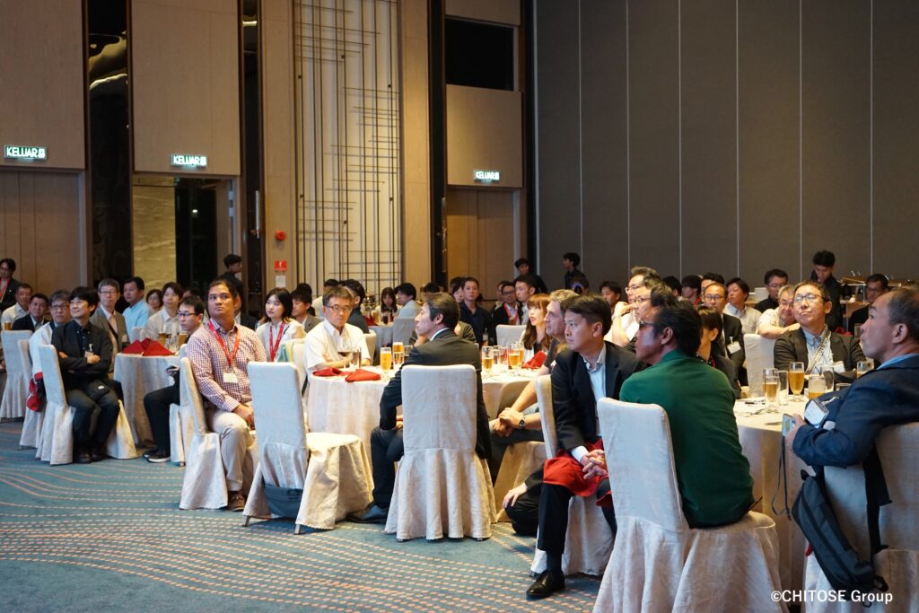 1日目の晩は、株式会社資生堂 エグゼクティブオフィサーの池田智子様による乾杯のご挨拶を合図に懇親会が開催されました。懇親会の中盤では、参加企業による自社紹介のセッションが行われました。各社の代表者(グループ企業はグループの代表者)32名が順番に「千年祭」の法被を身につけ、MATSURIへのご参画理由、MATSURIに懸ける想いを語ってくださいました。また、懇親会終盤、キャメロンハイランドのちとせ野菜を皆様に提供し、マレーシアで育つ日本品質の野菜をお楽しみいただきました。「経済面でも環境面でも持続可能な農業をしている」という説明、そして何よりもみずみずしいトウモロコシ、トマトの味に多くの方が感銘を受けたご様子でした。